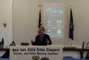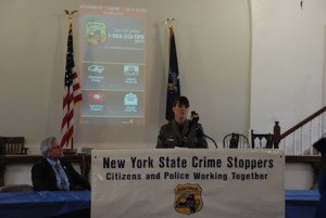 Captain Lisa Loughran, NYSP, commanding officer of the Bureau of Criminal Investigation for Troop K spoke of the importance of the new technology NYS Crime Stoppers has brought to the law enforcement community state-wide with their new smart phone app and of the valuable and productive relationship the New York State Police has had and will continue to have with NYS Crime Stoppers.