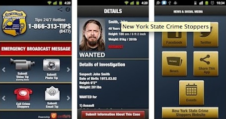 The New York State Crime Stoppers Mobile App is available for free download from the Apple App store for I-Phone, at Google Play for Android phones and at Blackberry App World. The app can also be downloaded at the NYS Crime Stoppers Web Site, www.nyscrimrstoppers.org. Citizens of New York State are encouraged to become a crime fighter and download this free app today.